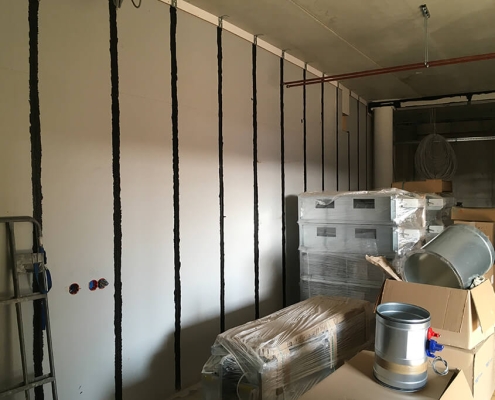 Various air barriers and waterproofing have been realized with the products of Liquid Rubber. For example, the seams between the HSB elements were first filled with PU foam and made airtight with Liquid Rubber HBS200. On the roof of the building, the connections of the Promatect roof sheets are waterproofed with Liquid Rubber HBS200 and the Geotextile.